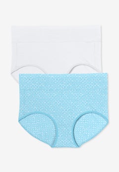 Our plus size panties come in such a wide variety of styles and fits, it’s easy to find the perfect pair. A basic bikini provides moderate coverage in an easy-to-wear cut. Look for styles that stay in place and don’t lose their shape over time. Boyshorts and hipsters provide extra support while minimizing midsection bulges. Cute and comfortable, these everyday styles look great on all body types, especially rectangular shapes. Say goodbye to panty lines with thongs or hi-cut briefs. Designed to disappear under body-skimming pants or dresses, these styles create the illusion of longer, slimmer legs and look great on pear-shaped bodies. High-waist styles and full-cut briefs define the waist while lengthening the look of legs. Try them if you’re an apple shape with a fuller midsection.