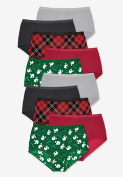 Our plus size panties come in such a wide variety of styles and fits, it’s easy to find the perfect pair. A basic bikini provides moderate coverage in an easy-to-wear cut. Look for styles that stay in place and don’t lose their shape over time. Boyshorts and hipsters provide extra support while minimizing midsection bulges. Cute and comfortable, these everyday styles look great on all body types, especially rectangular shapes. Say goodbye to panty lines with thongs or hi-cut briefs. Designed to disappear under body-skimming pants or dresses, these styles create the illusion of longer, slimmer legs and look great on pear-shaped bodies. High-waist styles and full-cut briefs define the waist while lengthening the look of legs. Try them if you’re an apple shape with a fuller midsection.