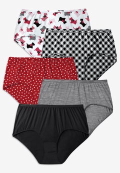 Our plus size panties come in such a wide variety of styles and fits, it’s easy to find the perfect pair. A basic bikini provides moderate coverage in an easy-to-wear cut. Look for styles that stay in place and don’t lose their shape over time. Boyshorts and hipsters provide extra support while minimizing midsection bulges. Cute and comfortable, these everyday styles look great on all body types, especially rectangular shapes. Say goodbye to panty lines with thongs or hi-cut briefs. Designed to disappear under body-skimming pants or dresses, these styles create the illusion of longer, slimmer legs and look great on pear-shaped bodies. High-waist styles and full-cut briefs define the waist while lengthening the look of legs. Try them if you’re an apple shape with a fuller midsection.