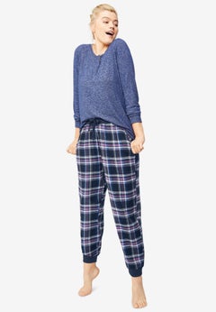 From knit sleep pants and flannel pajama shorts to thermal lounge pants and rib trim leggings, all of our plus size pajama bottoms are bursting with trendy and flattering features that suit every style preference.
