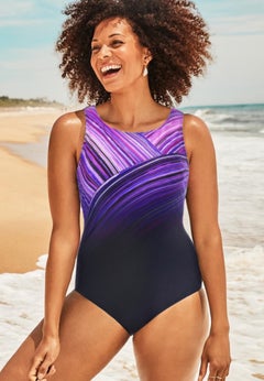 Available in 12W – 36W, we carry the sizes you need to look and feel your best in a bathing suit. With sculpting and shaping features, our one piece swimsuits help provide tummy control, bust support, and hip minimization. They’ll also give you a major boost in confidence on and off the beach.