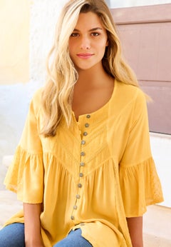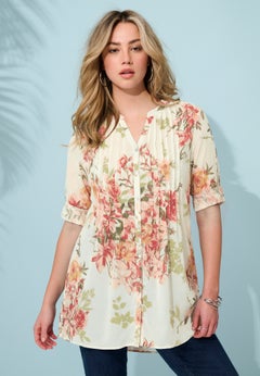 There's so many ways to stay on top of your style game at Roaman's. With over 100 years of expertise in designing for curvy figures, our shirts boast the most feminine details and the absolute best fit. Our must-have collection of plus size shirts and plus size blouses features playful prints, gorgeous colors and hot trends for every season. You'll find short sleeves, long sleeves, button-downs, tunics and popovers in a variety of styles and designs to fit your shape, your mood and your lifestyle—all in sizes 12W and up.