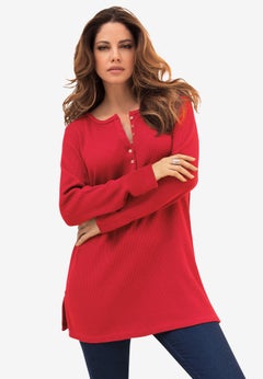 If you’re looking for something with a little more detail, check out the Long-Sleeve Two-Pocket Swing Tunic. The pretty trapeze shape and pleated front will accentuate your curves. Plus, it comes in many appealing colors that will blend wonderfully with your wardrobe.