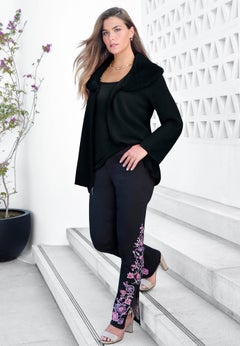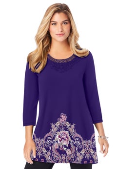 If you’re looking for something with a little more detail, check out the Long-Sleeve Two-Pocket Swing Tunic. The pretty trapeze shape and pleated front will accentuate your curves. Plus, it comes in many appealing colors that will blend wonderfully with your wardrobe.