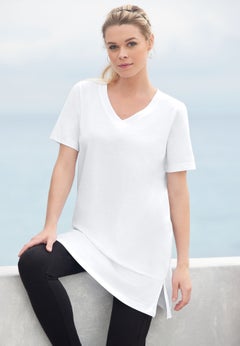 The perfect tee is a wardrobe game changer. There's just nothing easier than tossing one over a pair of leggings or skinny jeans. From casual cotton crews to dressy knits in prints and patterns, there's nothing basic about them. Available in sizes 12W and up, our collection of tees and knit tops is designed with your fuller figure in mind. We focus on what's important to our customers so we design our plus size tees and plus size knit tops in the most comfortable fabrics and the most flattering fits for every body type.