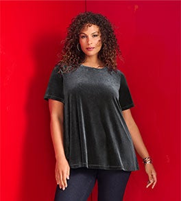 The perfect tee is a wardrobe game changer. There's just nothing easier than tossing one over a pair of leggings or skinny jeans. From casual cotton crews to dressy knits in prints and patterns, there's nothing basic about them. Available in sizes 12W and up, our collection of tees and knit tops is designed with your fuller figure in mind. We focus on what's important to our customers so we design our plus size tees and plus size knit tops in the most comfortable fabrics and the most flattering fits for every body type.