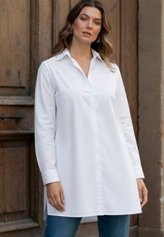Tunics are a curvy girl's best friend. Available in sizes 12W and up, our collection of plus size tunic tops comes in a variety of lengths--from 28 inches to 48 inches -- so you can choose as much (or as little) coverage as you want. Our incredibly large assortment includes swing tunics, knits and wovens, short and long sleeves, simple and embellished styles. We've even taken our favorite button down shirt--The Kate--and turned it into a tunic with flattering design details like an A-line silhouette and bust darts. Rock one every day of the week, any time of year.