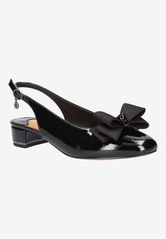 A stylish black pump with a pointed toe, bow detail, and a comfortable 2.5" heel.